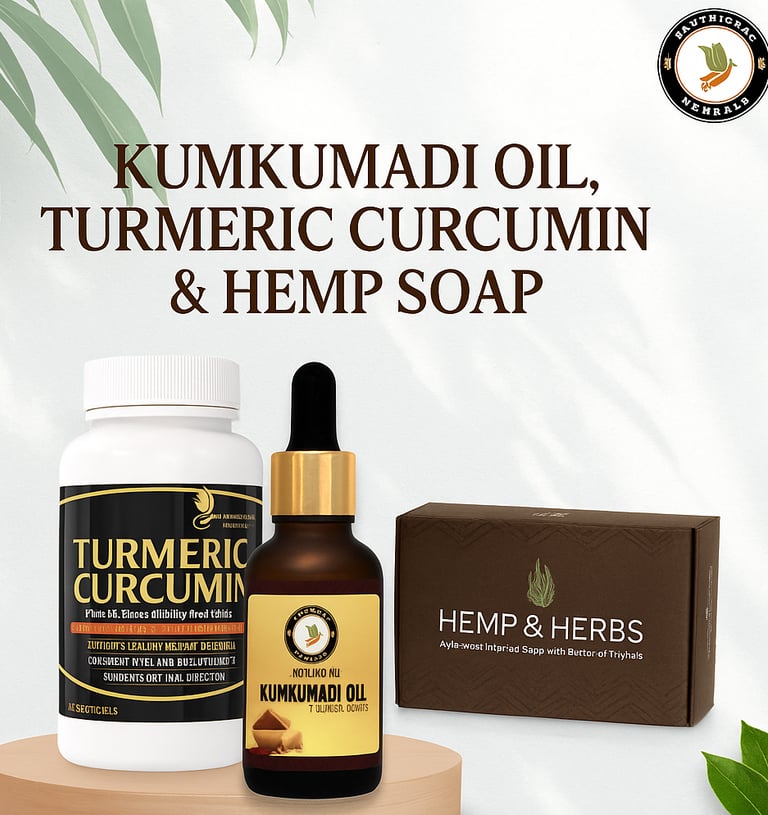 Kumkumadi Oil, Turmeric Curcumin, & Hemp Soap (3 in 1 Combo)
